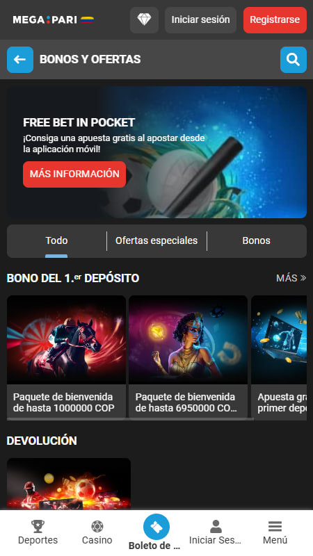 Megapari llega con el catálogo de promociones más pequeño de la selección. ¡Pero que eso no te engañe! Porque aquí encontrarás todo lo que necesitas para divertirte mientras realizas tus apuestas.