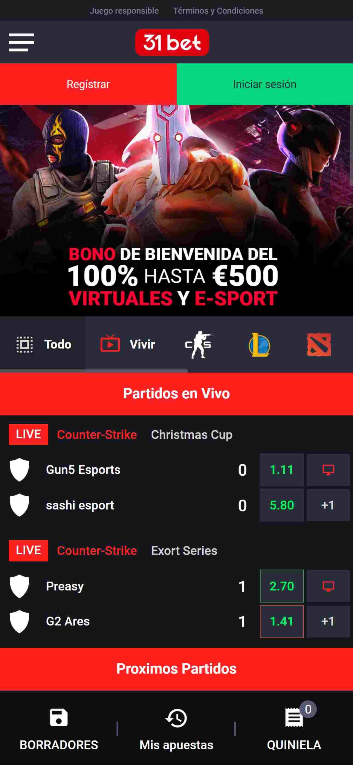 Un dato importante sobre las apuestas en directo de 31Bet es que la oferta deportiva puede ser un poco limitada y no todos cuentan con el acceso a streaming en vivo, pero igual puede tener buenos pasos de estrategias y ganar buen dinero.