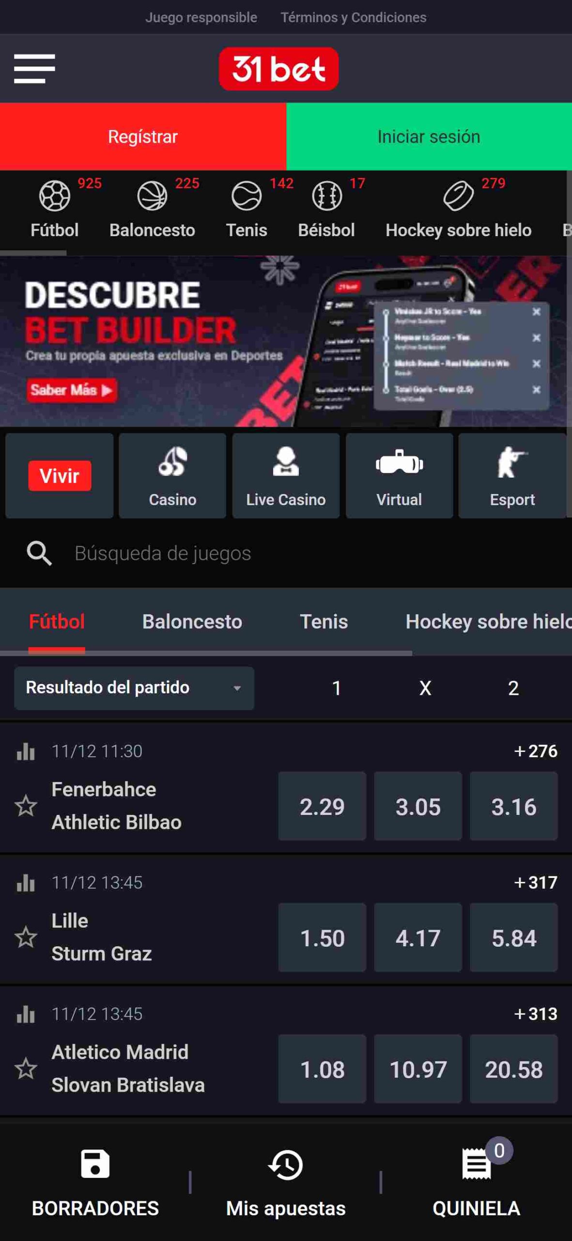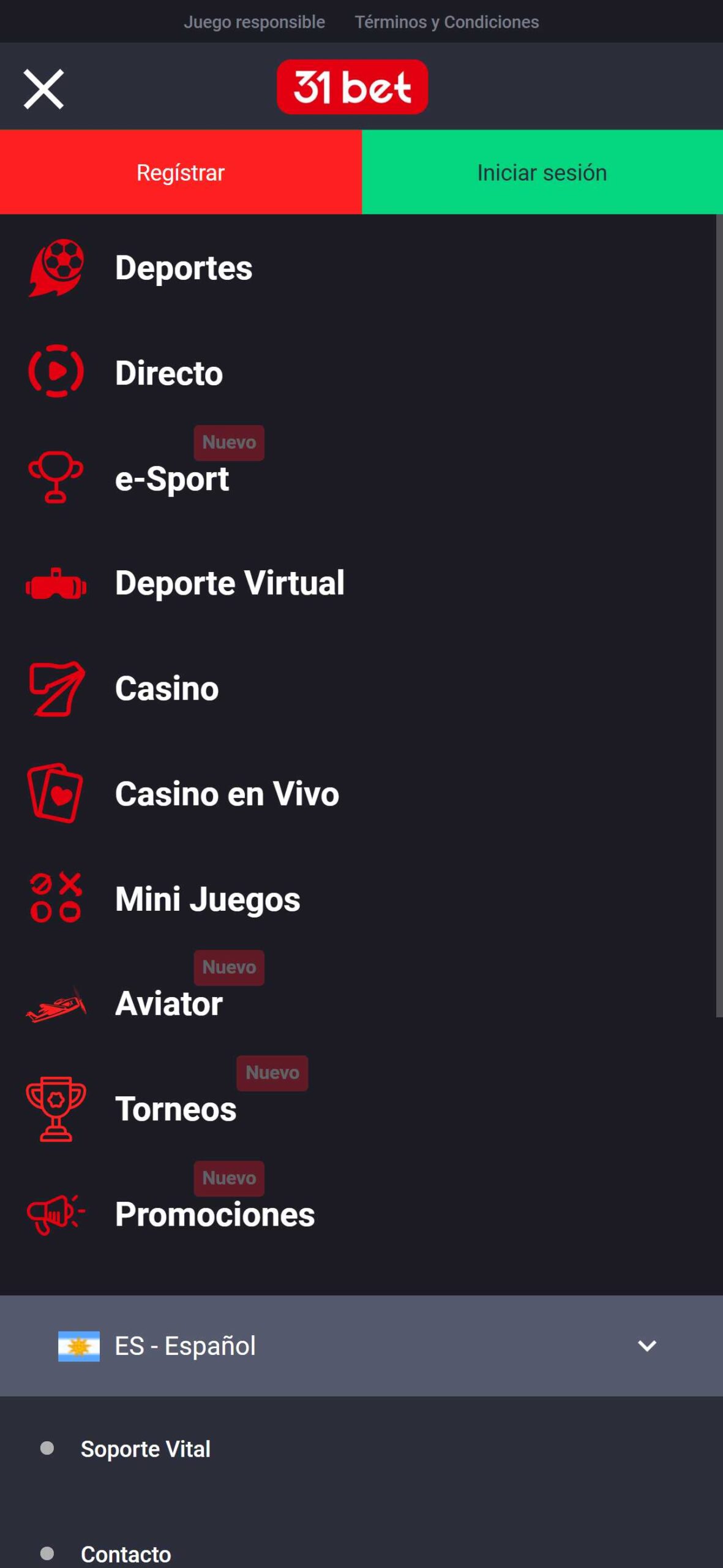 Desde que inicias es 31Bet puedes notar que es una página muy simple de utilizar. En la parte superior se encuentran las secciones o categorías del sitio, aquí puedes hallar fácilmente los “Deportes”, “Promociones” y algunas otras relacionadas. Si necesitas aún más información como, por ejemplo, términos y condiciones del sitio, licencias, redes sociales y demás, ve hasta el final del sitio y hallarás todo lo que buscas.