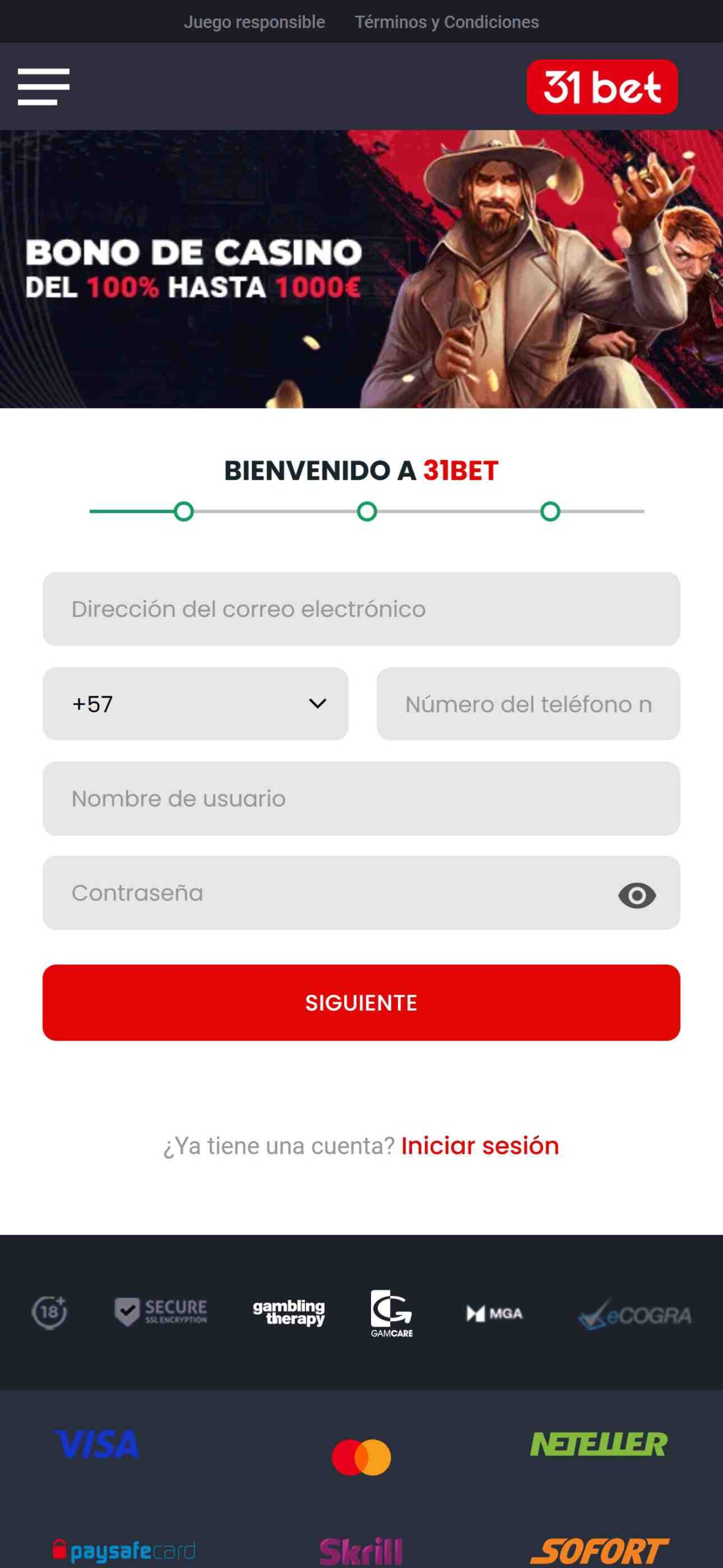 31bet ofrece una versión móvil del sitio con todas las funciones en su mejor forma. Todas las apuestas y bonos al alcance de tu mano sin ningún tipo de retraso o inconveniente, pues el sitio se optimiza de manera adecuada para cualquier tipo de dispositivo. Desafortunadamente, la versión móvil de 31Bet es lo más cercano que puedes llegar a tener de una aplicación móvil.