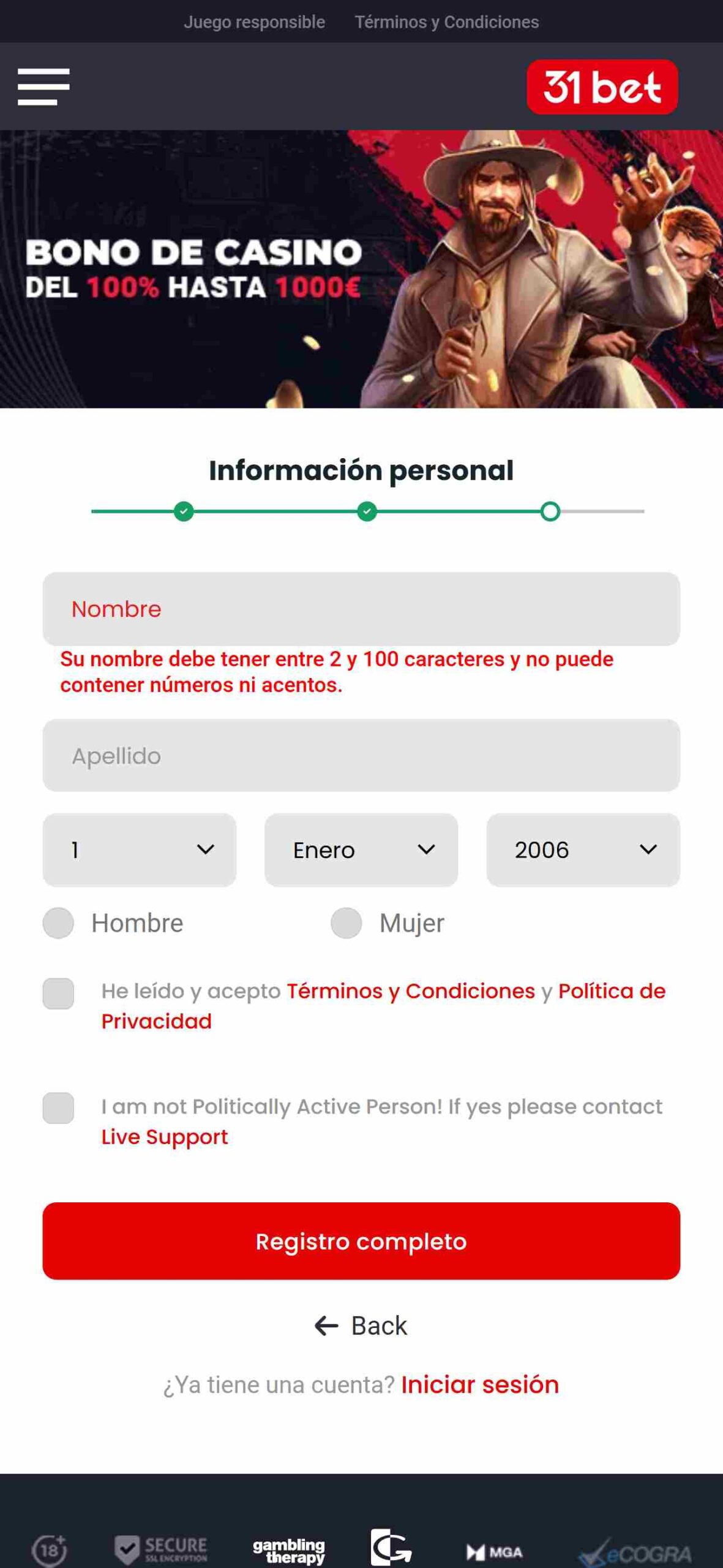 Por otra parte, y por request de la misma licencia, 31Bet ofrece al usuario un sistema de seguridad para protección de sus datos tanto financieros como personales y se compromete a mantenerlo siempre con el juego responsable. En este último punto, la plataforma ofrece herramientas que incluyen el periodo de espera y la autoexclusión del sitio.