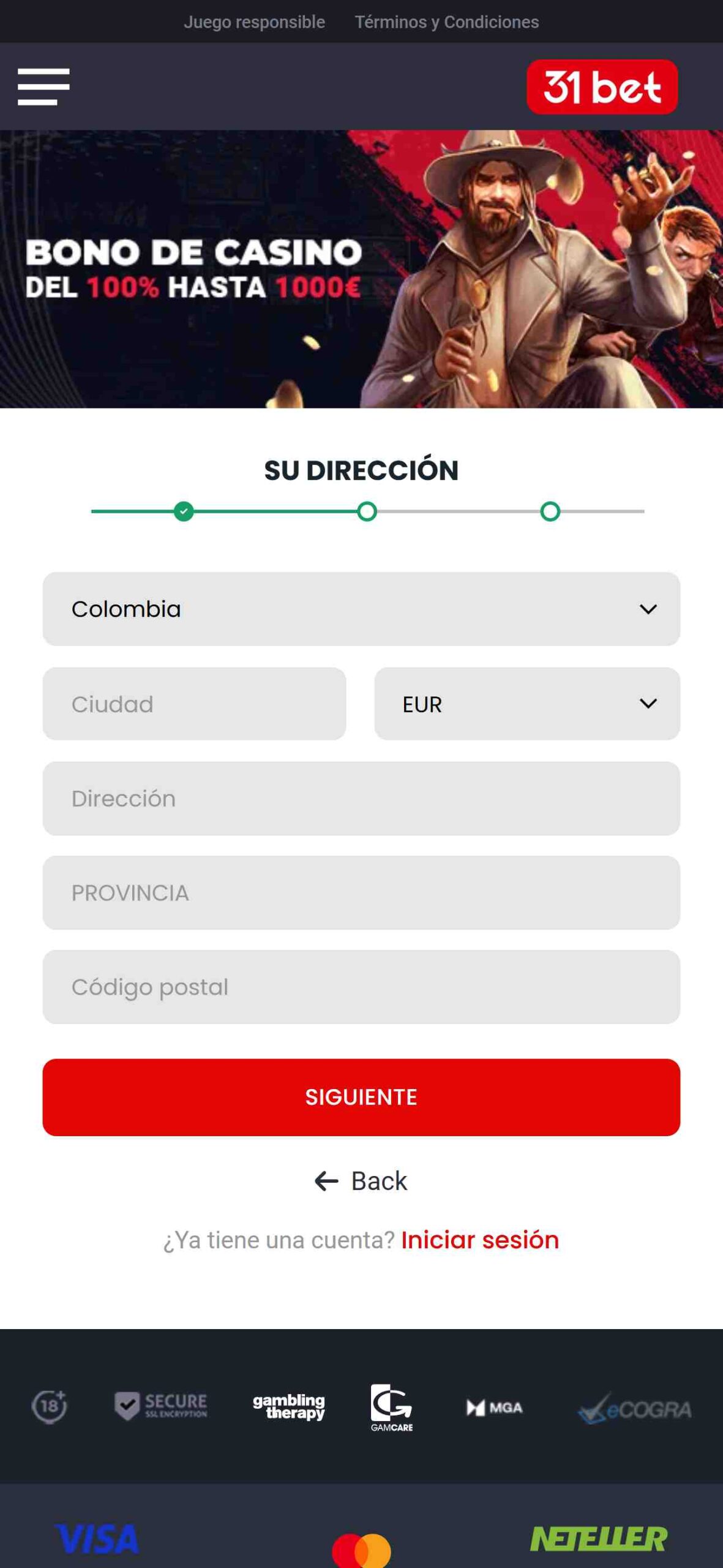 31bet facilita tus opciones de pago para depósitos y retiros brindando una serie de métodos como billeteras electrónicas y tarjetas bancarias. Si bien 31bet no maneja el peso colombiano, puedes realizar tus transacciones al equivalente del Euro u otra moneda.