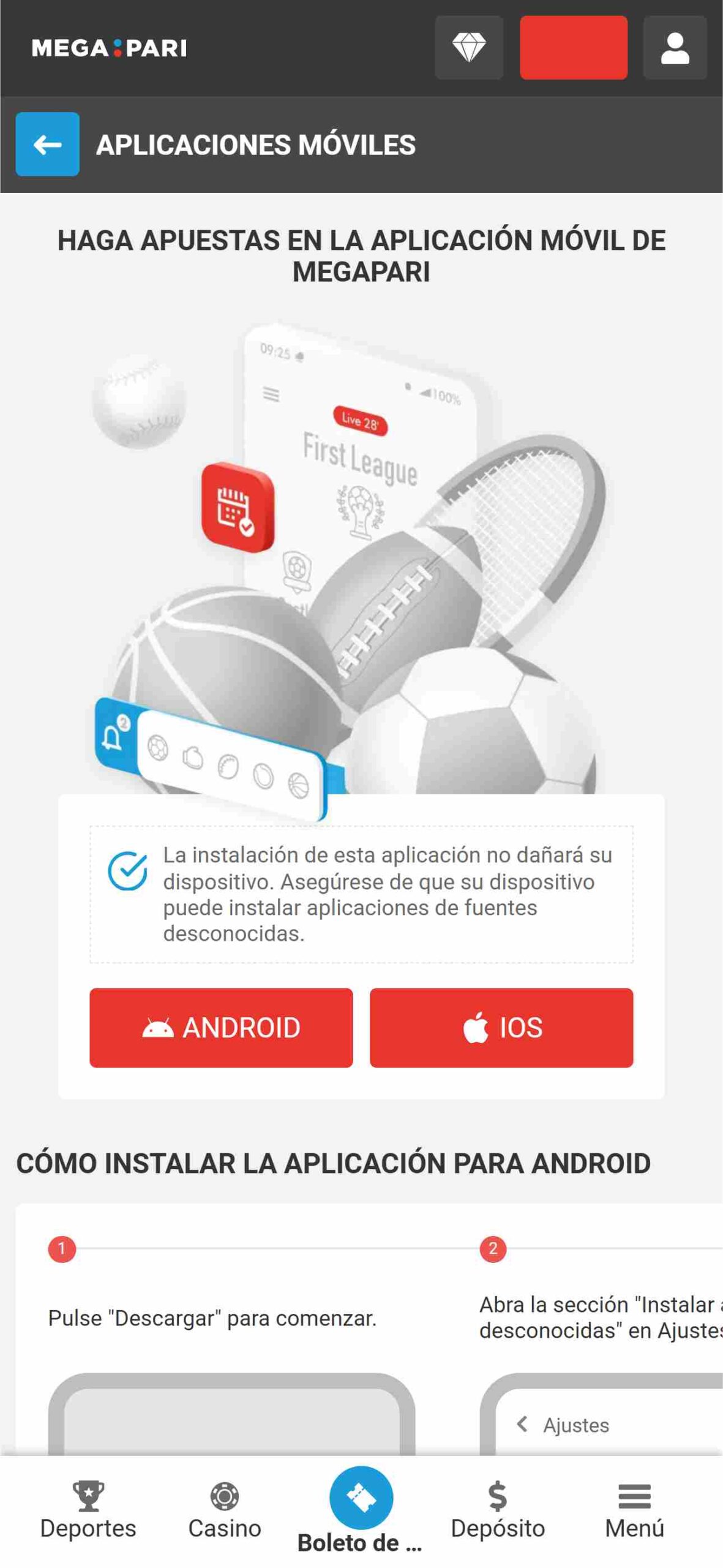 Megapari cumple en todos los puntos posibles, esto también incluye llevar las apuestas deportivas a la pantalla de tu móvil. Para esto, la casa de apuestas brinda una versión móvil y una aplicación que cuenta con todas las funcione, haciéndola una de las casas de apuestas más completas del mundo del eGaming.