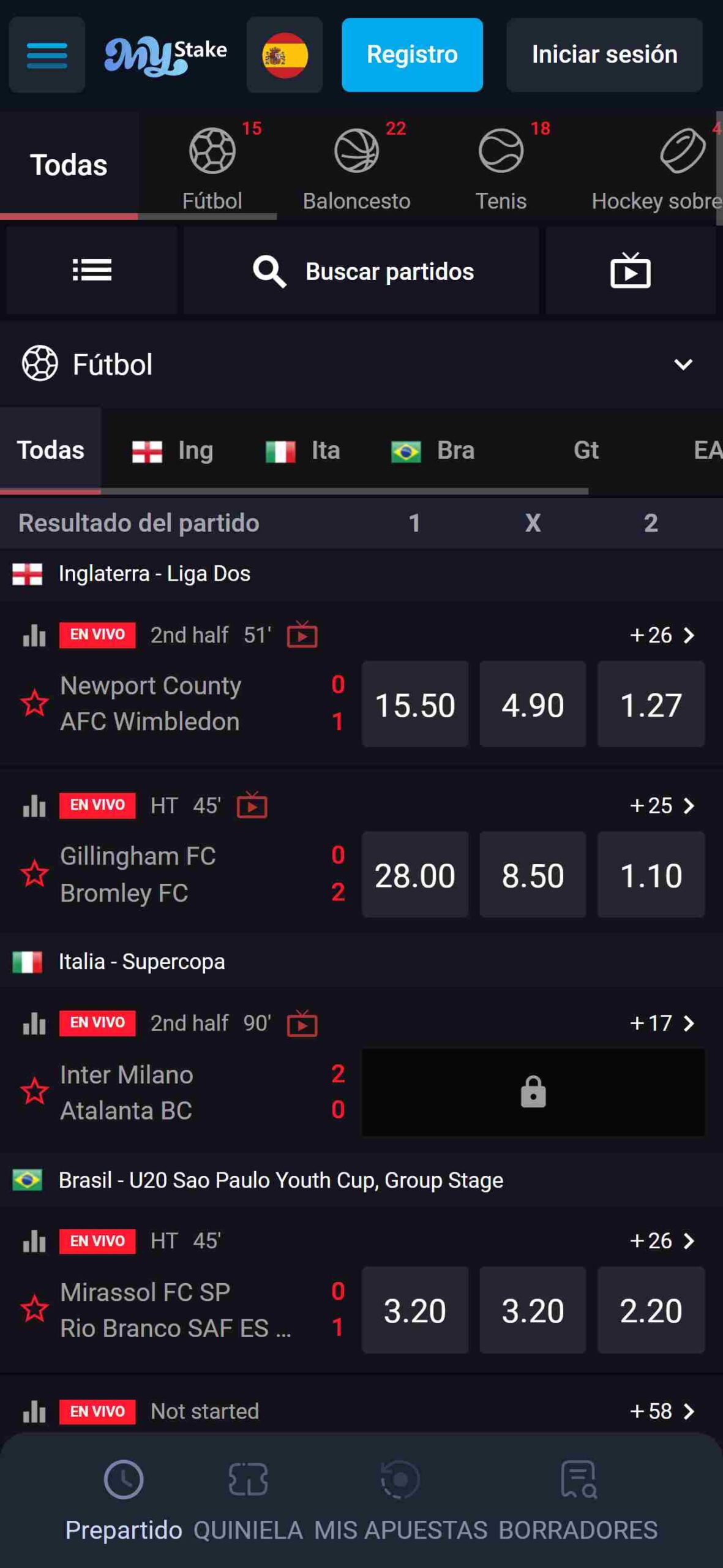 Mystake ofrece un catálogo con más de 35 deportes, complaciendo a los entusiastas más exigentes en sus distintas preferencias. La plataforma destaca por su variedad de eventos y mercados disponibles, en futbol tienen más de mil eventos, algunos de estos incluyen las mejores ligas y podrá apostar por partido de juegos entre Liverpool y el Real Madrid si así lo desea.